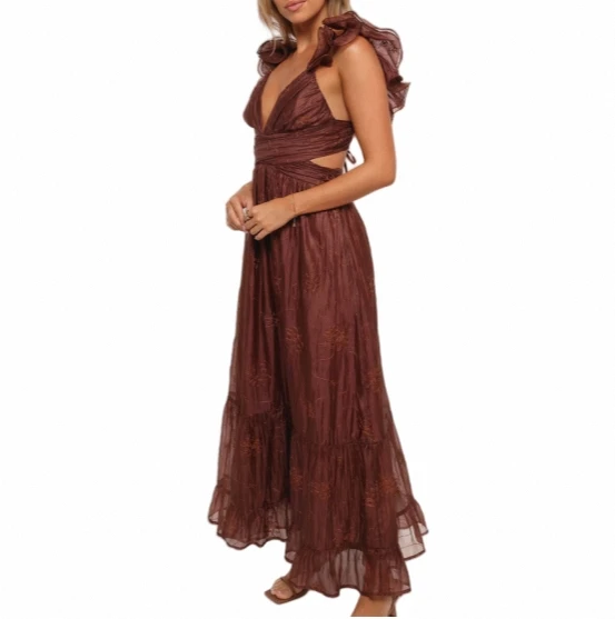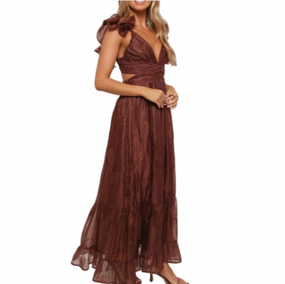 Autumn Women's Party Ball Dress V-Neck Slimming Long Chiffon Ball Skirt Waist Cinching Thin Shoulder Strap Solid Long V-Neck